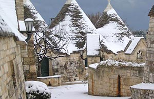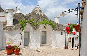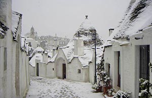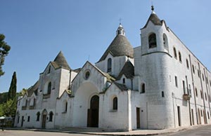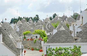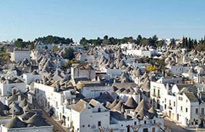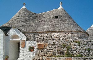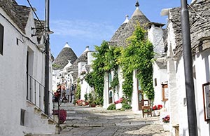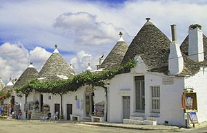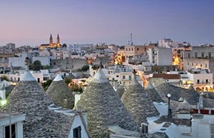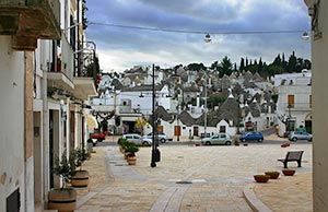 Alberobello, eine kleine Stadt, berühmt für seine Trulli (Gebäude ganz aus Stein)Es ist ein Weltkulturerbe "der UNESCO im Jahr 1996. Sehr bekannt ist die Produktion des typischen Wein und Öl. Bollwerk Handwerkskunst ist auch die kulinarische Kunst, sowie die Produktion von typischen lokalen :Spezialitäten wie Mandelöl, Pettole, cartellate und Makronen . Auch die Einheimischen sind für ihre Fähigkeit bekannt, in der Textil-, noch können Sie leinene Kleider in den Geschäften zwischen der Trulli befindet erwerben.